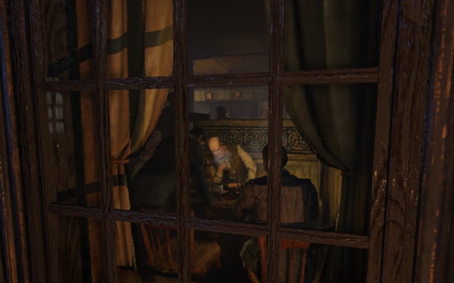 The game world is not open by any means, but the sights and sounds of its settings make up for it– London in 1895 is a dangerous, beautiful place. This is exactly the kind of game that should use the Unreal 3 Engine, and it looks and feels glorious. The music is gorgeous and never intrudes. Special props to their doodad team: if you are the kind of person who appreciates a certain level of incidental detail– the type who noticed that only one brand of beer exists in the L.A. Noire universe– this game will scratch your itch for a meaningful variety of things on shelves to zoom in and look at.